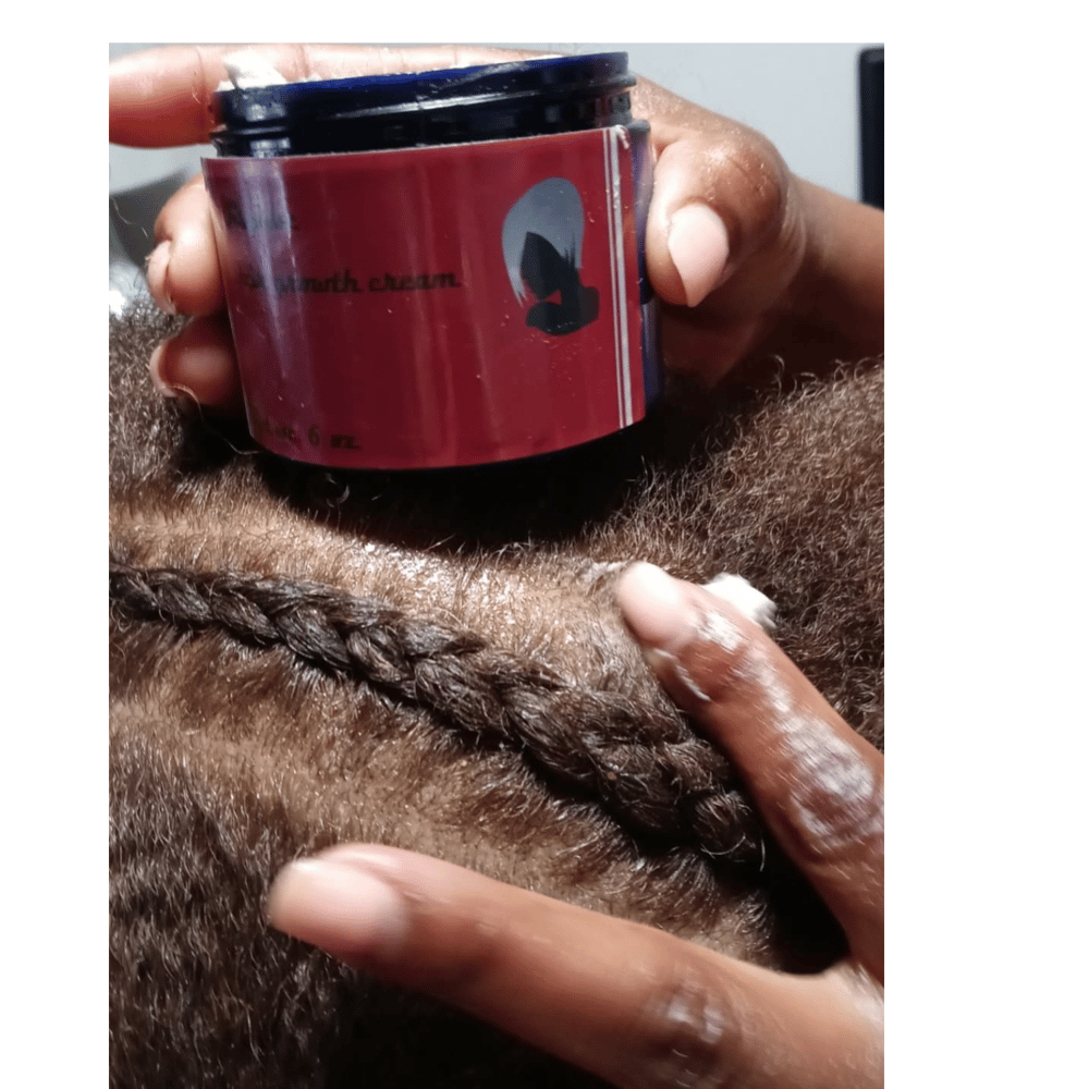 All-natural, Shea Butter base, Rose, Rosemary, Lavender, Eucalyptus, Peppermint Oil and Chebe Power.
